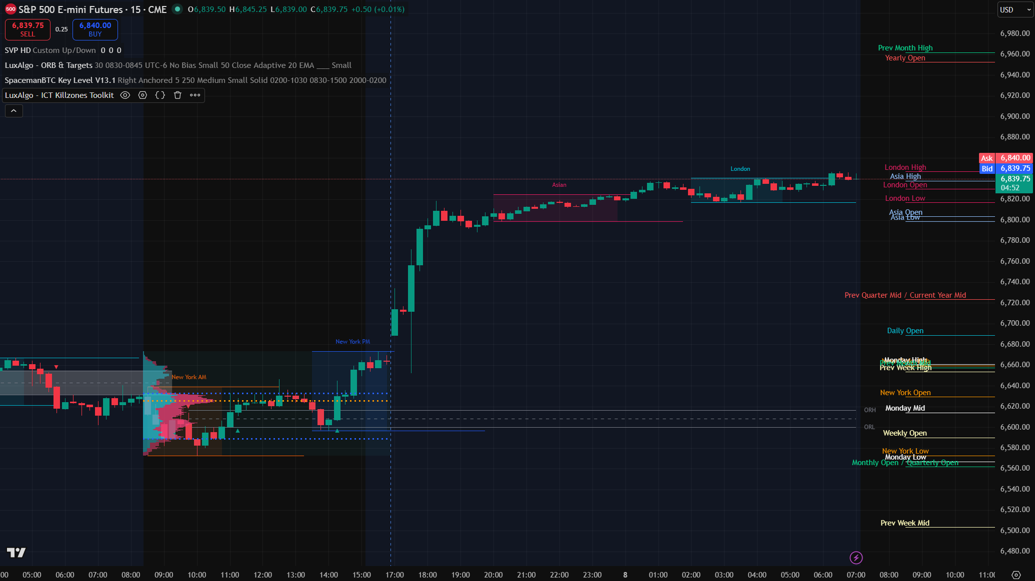 Current Pre-Market ~6,830 – 6,840 Strong gap higher (~+2.65%)